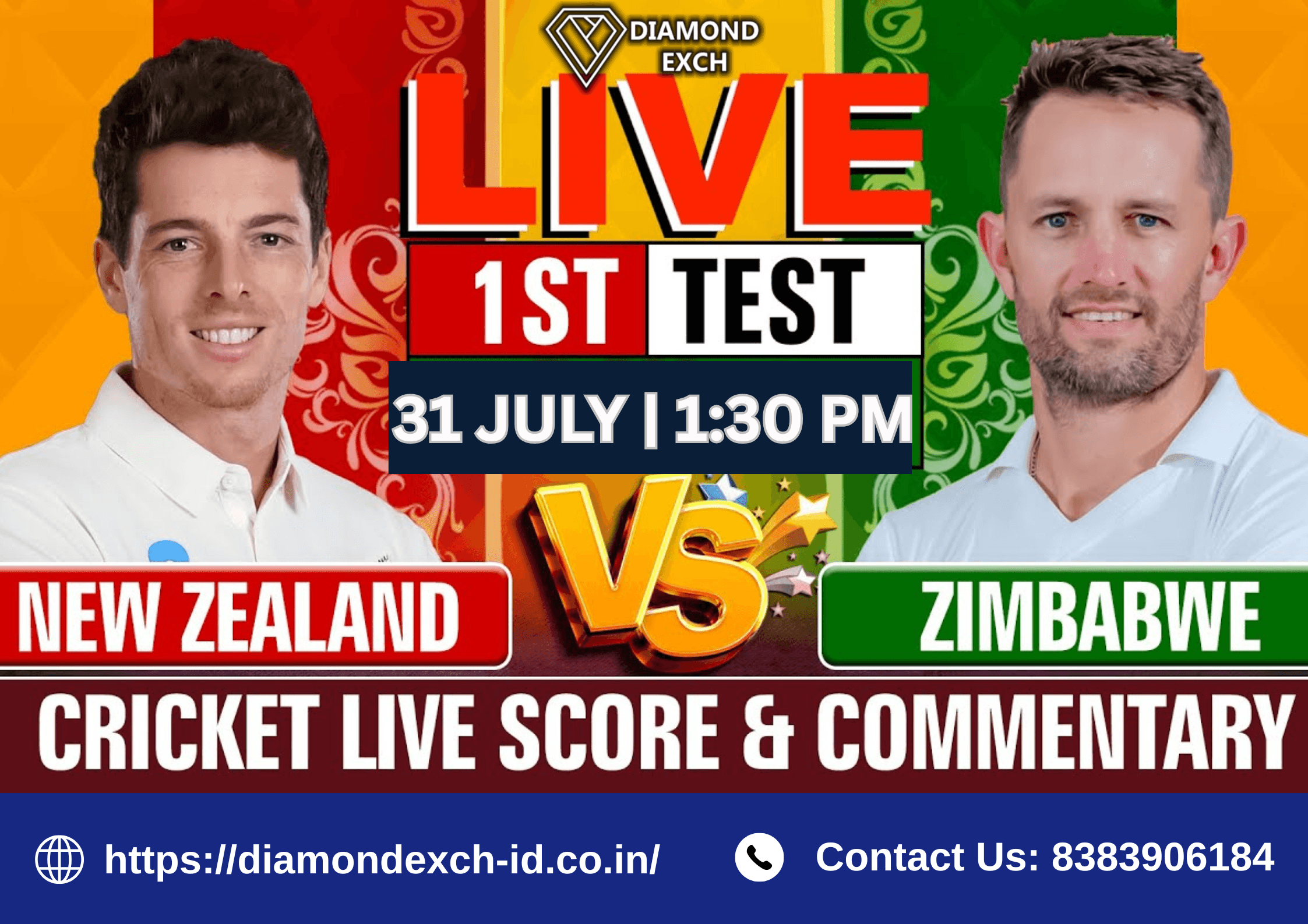 Official Website: https://diamondexch-id.co.in/ Contact Us: 8383906184 Introduction to Diamond Exchange. Cricket fever is sweeping across Zimbabwe as the much-anticipated 1st Test match between Zimbabwe and New Zealand unfolds in Bulawayo. Fans are b...