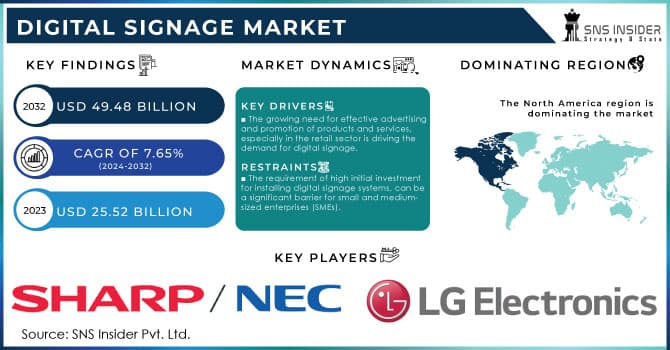 Digital signage market size was valued at USD 25.52 Billion in 2023. It is expected to Reach USD 49.48 Billion by 2032 and grow at a CAGR of 7.65% over the forecast period of 2024-2032. Digital Signage Market is witnessing rapid adoption across indus...