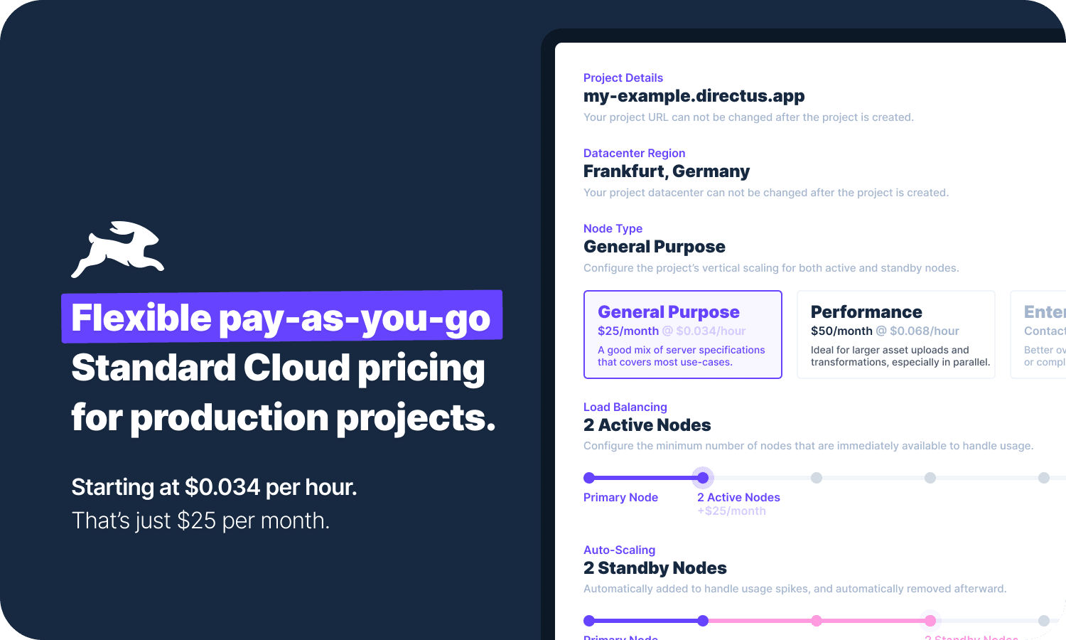 Directus Standard Cloud: Self-service with Pay-as-you-Go Pricing