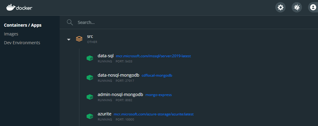 My dev machine's docker-compose? All the data services I use constantly.