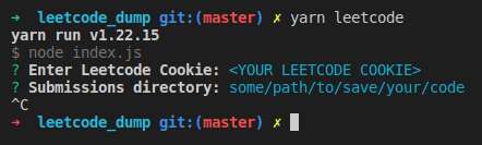 Run yarn leetcode to start the process, it will ask for your leetcode cookie which is required to fetch your submissions, it can be fo...
