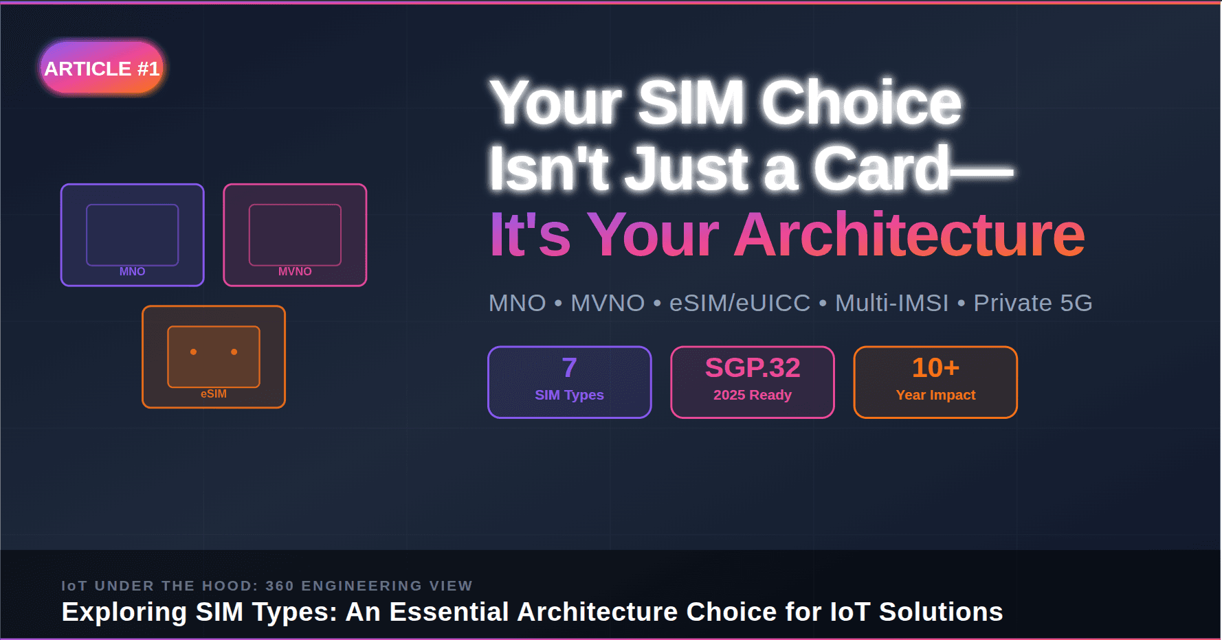 π Table of Contents Introduction SIM Types Deep Dive How SIM Choice Shapes Your IoT System Architecture Common Engineering Mistakes (Learned the Hard Way) Reference Decision Framework: Choosing Your SIM Strategy Key Takeaways for IoT Engineer...