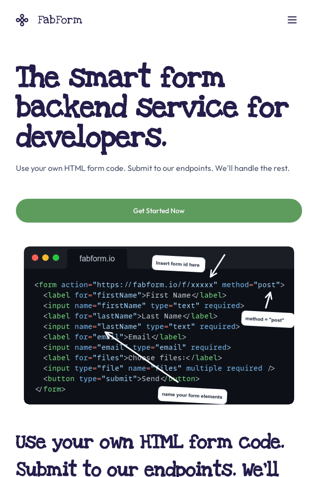 FabForm is a service that allows you to handle form submissions without needing your own backend server. Below is a step-by-step tutorial on how to use FabForm for handling form submissions in a web application. Step 1: Sign Up for FabForm Visit Fab...