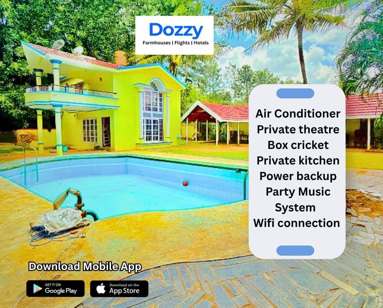 The farmhouse near Doddaballapur is just 40–50 km away from Bangalore, which makes it easily accessible by road. This convenience attracts people looking for a short stay or one-day trips with family or friends. You get larger plots, private gardens,...