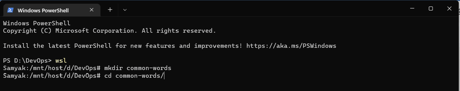 Completed learning basic Linux commands so I have decided to implement it in a project which can find common words from 2 different files and create a new file that contains those words