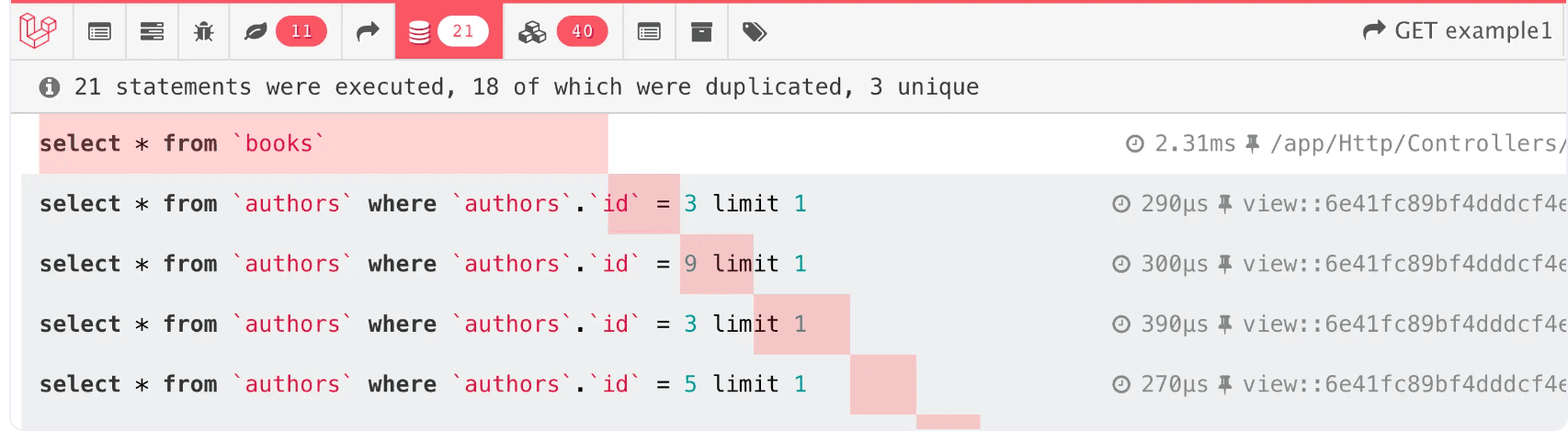 Fight the problem of too many (N+1) SQL queries, on THREE levels. 1. FIND & fix them: with Debugbar https://github.com/barryvdh/laravel-debugbar 2. AVOID them: learn to use Eager Loading https://laravel.com/docs/11.x/eloquent-relationships#eager-load...