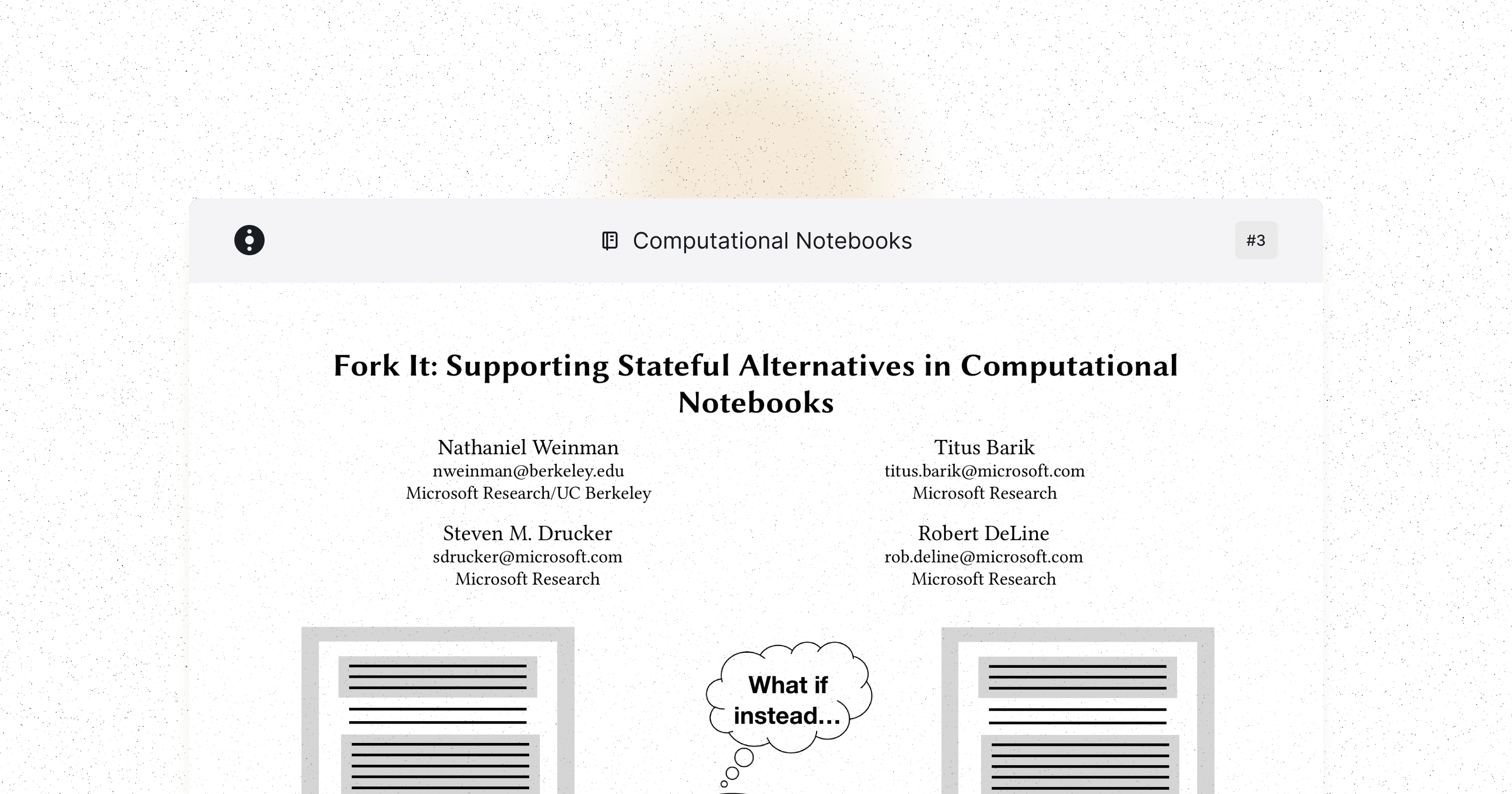 This paper introduces two new features in Jupyter Notebook: forking and backtracking. These features enable multiple states in each notebook (instead of just one) and facilitate exploring and comparing alternatives (such as different Machine Learning...