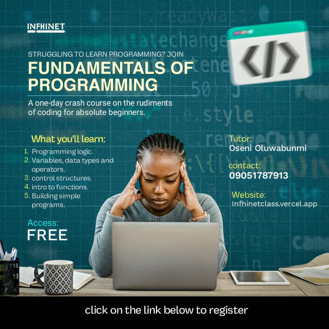 Free Live Session for Absolute Beginners 👩💻 Want to learn to code but don’t know where to start?Join us for a beginner-friendly workshop that covers the fundamentals of programming — the perfect first step into tech! 📝RVSP NOW 📅ADD TO CALENDAR ...