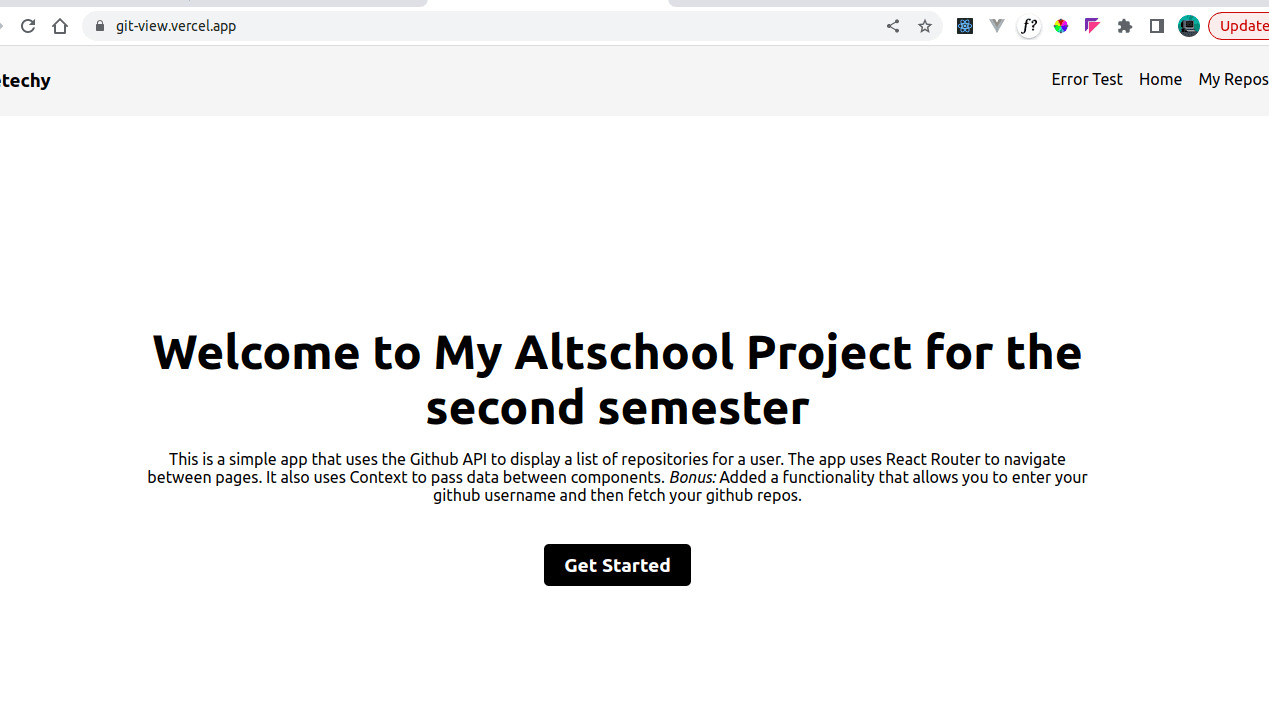 Git View is an application built using React.js, a JavaScript library for building user interfaces. It allows users to view all of their repos on the Git Repo platform, which is a web-based hosting service for Git repositories. Implementation Navigat...