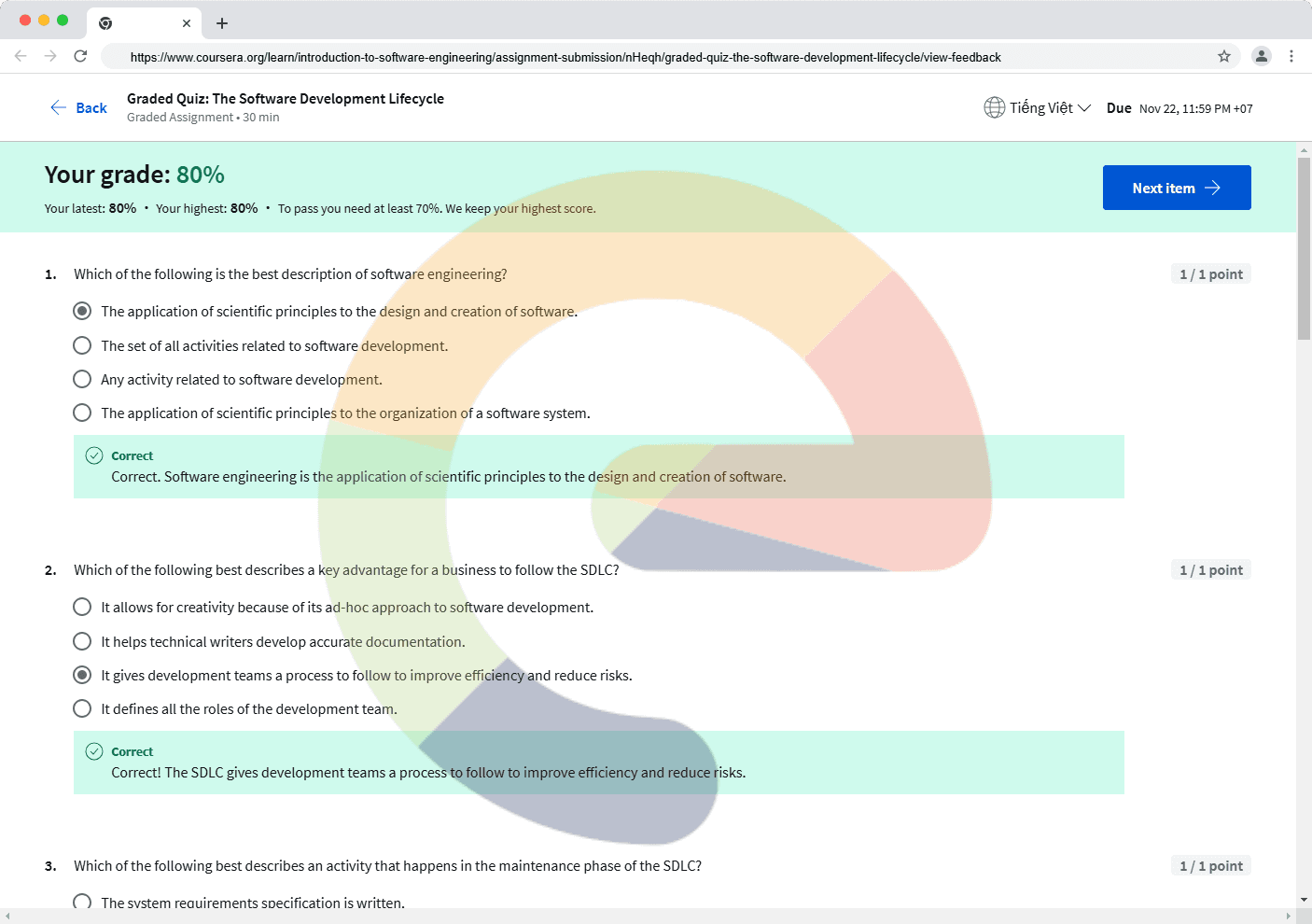 Which of the following is the best description of software engineering? The application of scientific principles to the design and creation of software. The set of all activities related to software development. Any activity related to software de...