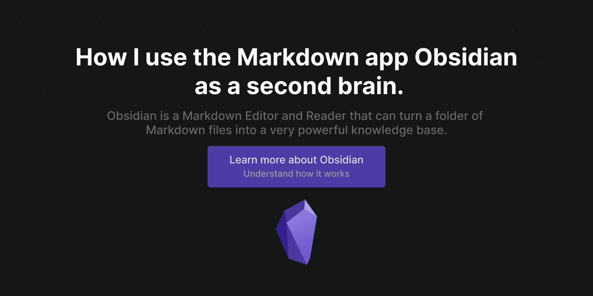 Obsidian is a Markdown Editor and Reader that can turn a folder of Markdown files into a very powerful knowledge base. The concept is that Obsidian is designed to work with a local folder on your computer which is also capable of syncing with cloud b...