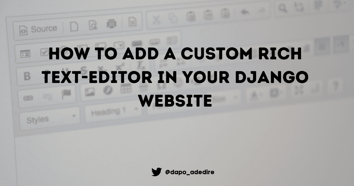 In this article, I'll be taking you through the steps of integrating a text editor with the Django-Ckeditor package. We wil going through 8 simple steps. Let's get started... Step 1: Installing Django-Ckeditor. It'll only take a few steps. Open the...
