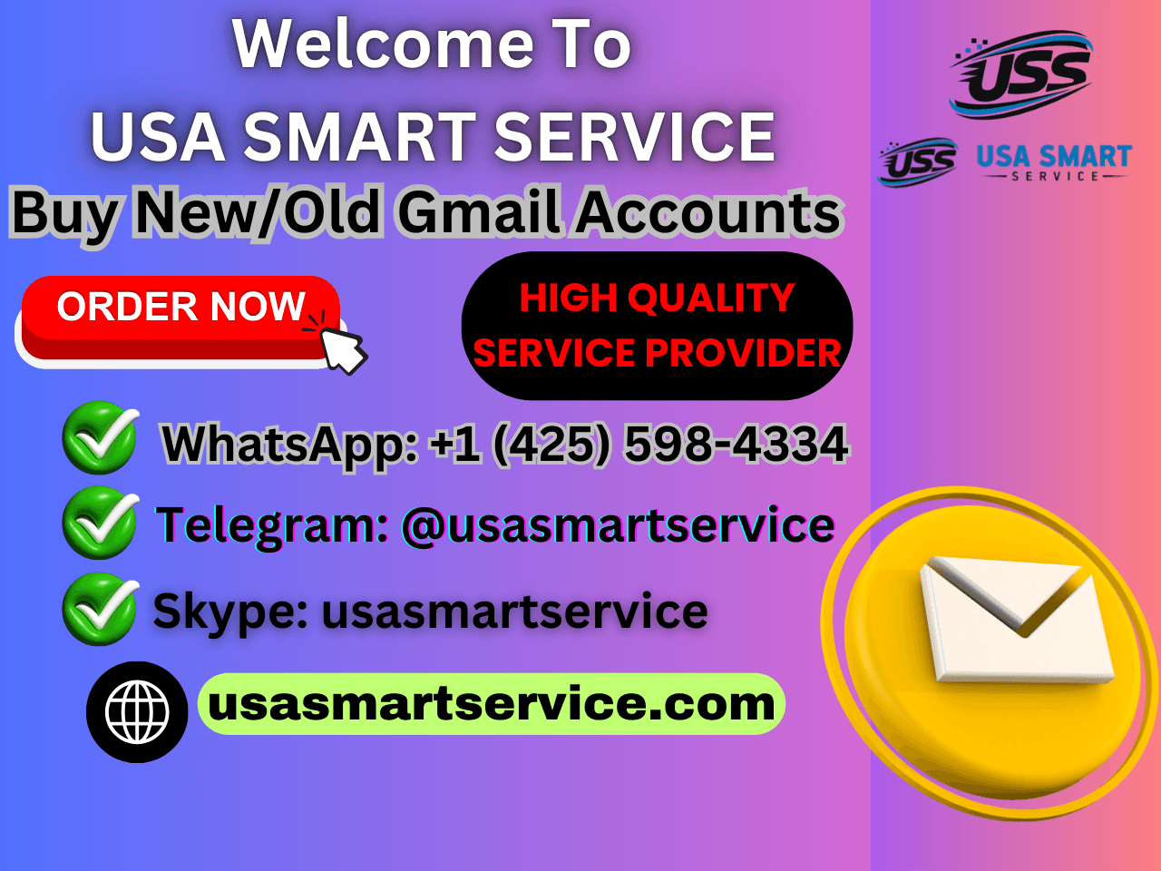 Buy USA Gmail Accounts To buy USA Gmail accounts you should find a Usasmartservice which is trusted. Right? Usasmartservice.com provides 100% genuine and long lasting Gmail accounts at the best rate. Our accounts will be authentic and best for profes...