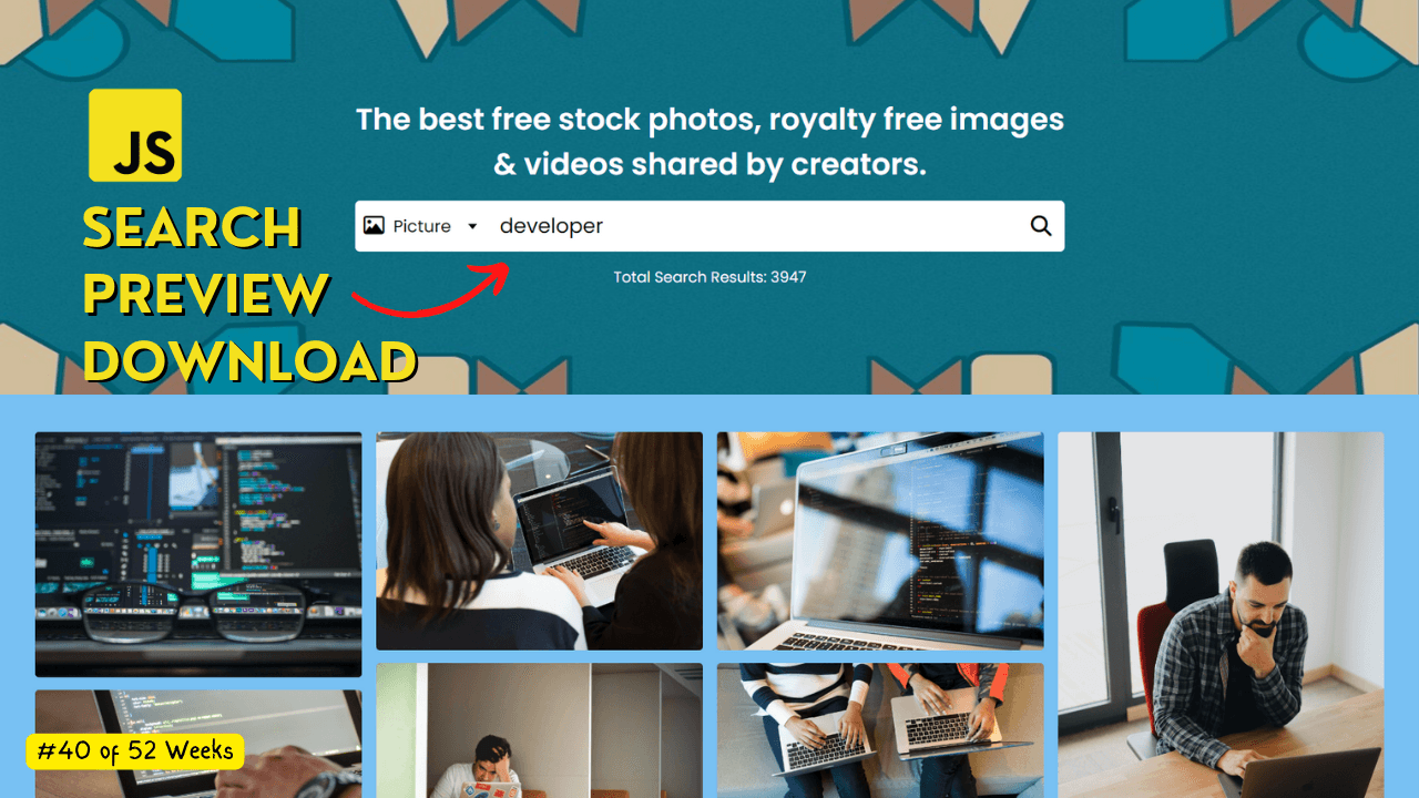 #Week 40 of 52 Weeks in JavaScript Projects Overview: Unlock the potential of web development by creating a dynamic Pictures and Videos Search Engine using HTML, CSS, and JavaScript! Dive into this comprehensive tutorial to build a powerful media sea...