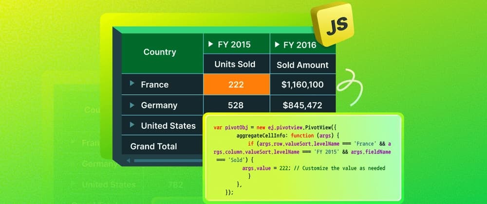 TL;DR: Struggling to customize JavaScript pivot table values beyond defaults? This guide shows how Syncfusion® aggregateCellInfo event lets you adjust specific numbers, display strings in pivot tables, and handle custom subtotal calculations for prec...