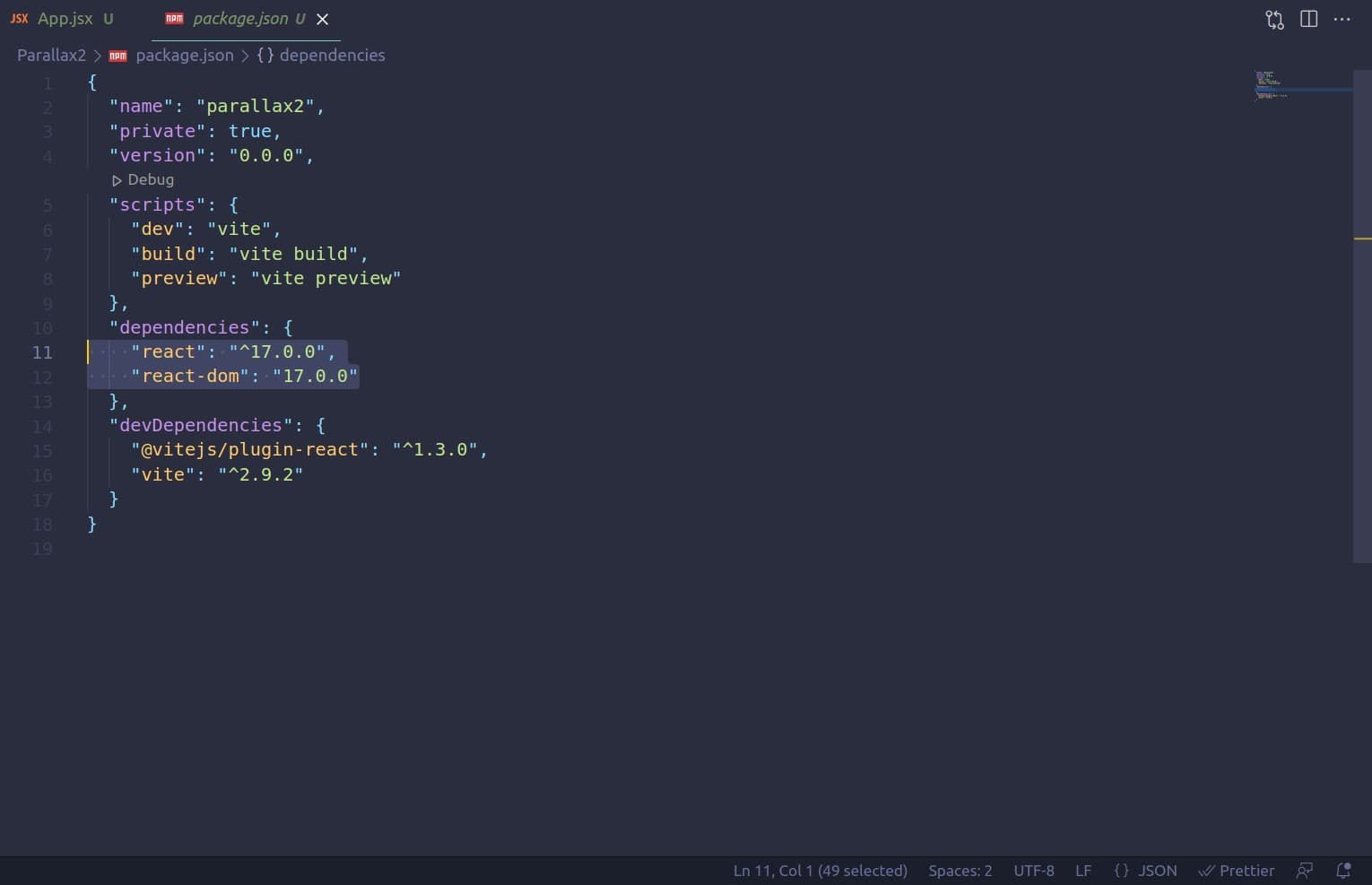 Hello! If you are on React version 18 and want to downgrade to React version 17. The following steps will teach you how to successfully downgrade from React version 18 to React version 17. Step 1: Change your React and React-DOM version to 17.0.0 i...