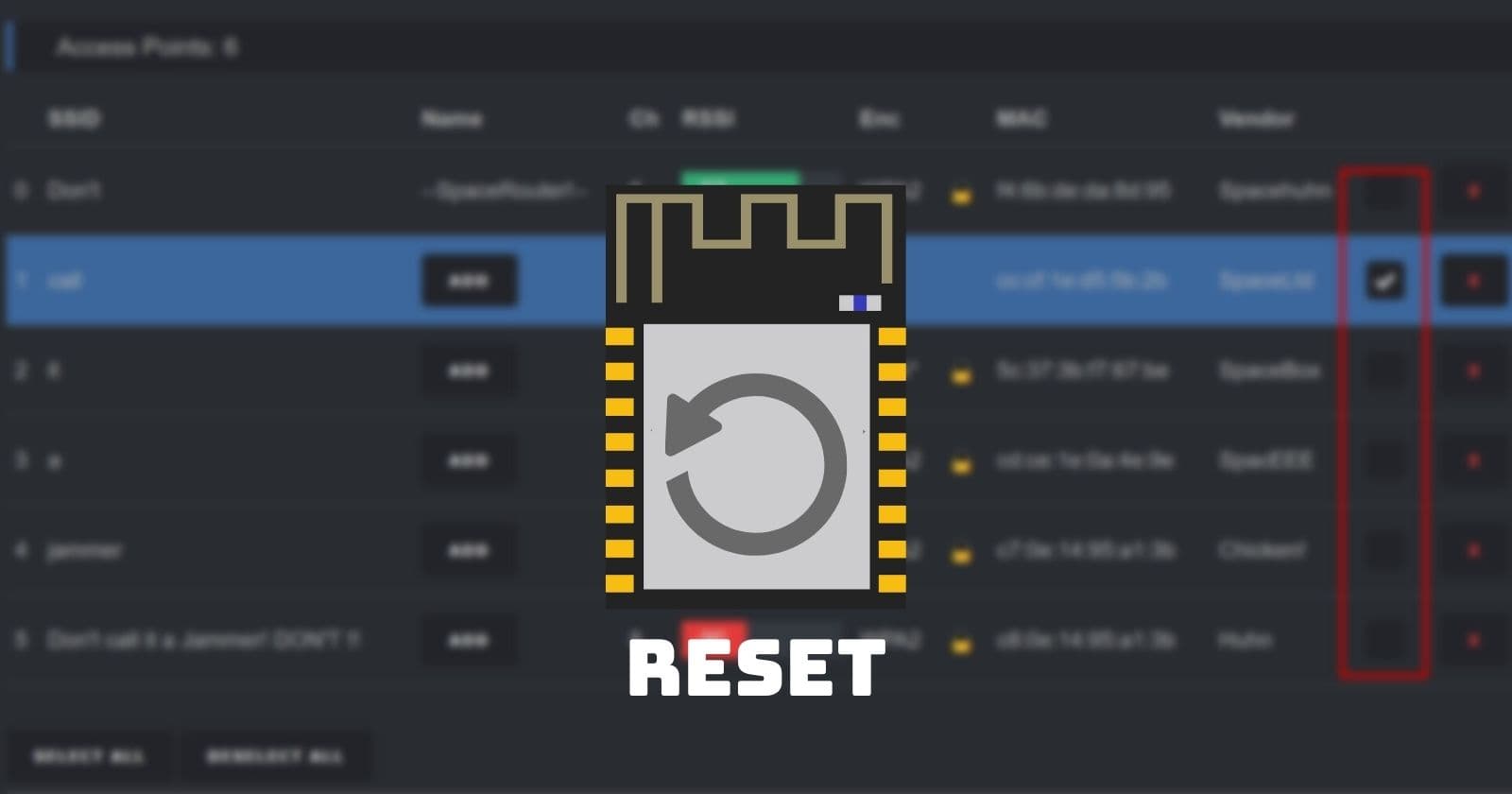 There are multiple ways to reset the ESP8266 Deauther. You can either send it a reset command via the USB serial con...