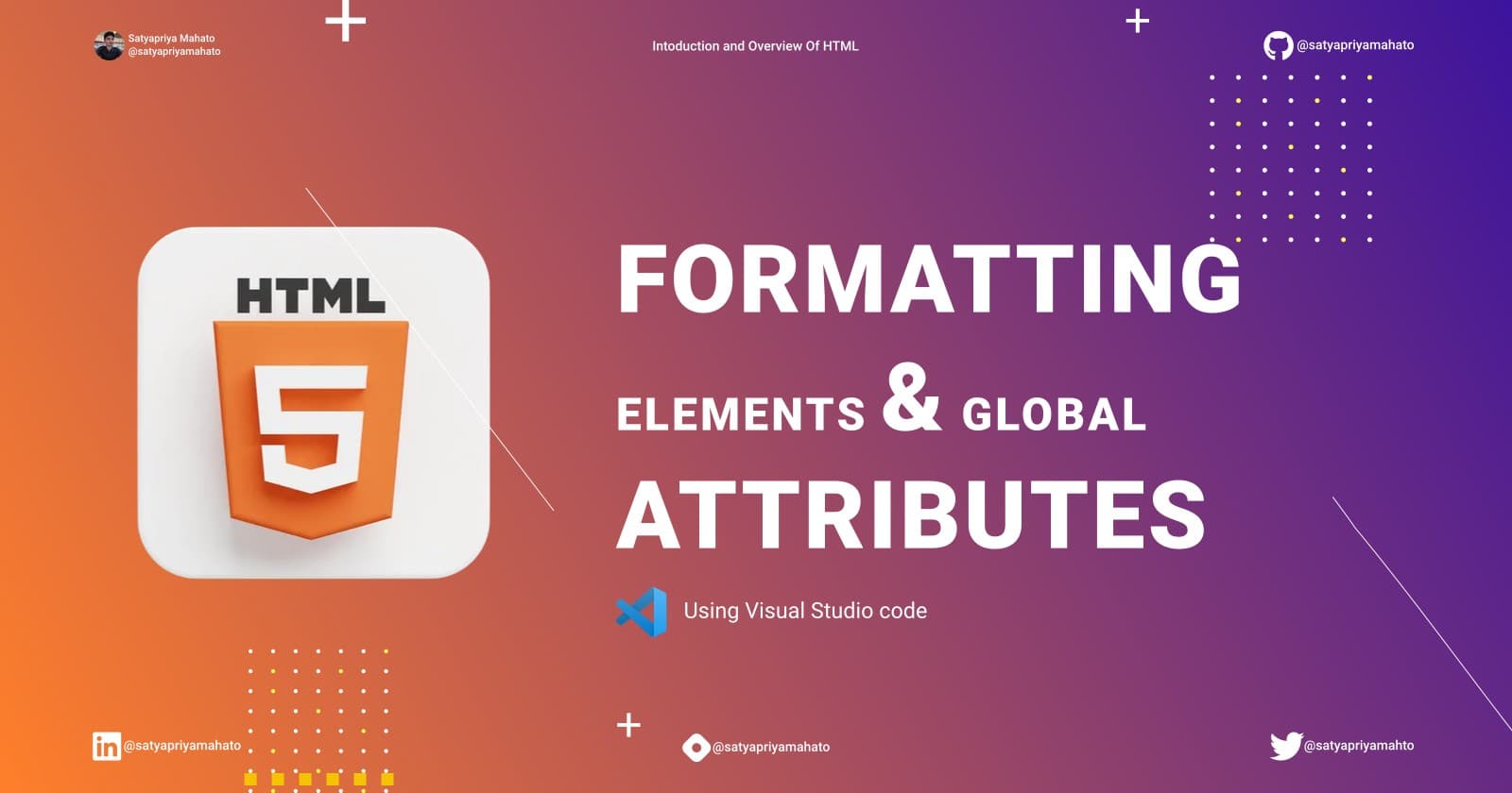 Introduction Till now we know about HTML tags and attributes. Now in this blog, we will explore global attributes and formatting. Formatting elements are those elements that were designed to display special types of text. Formatting Commenting in HTM...