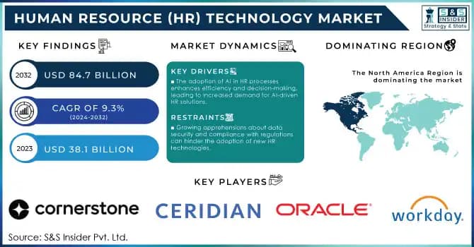 The Human Resource (HR) Technology Market Size was valued at USD 38.1 billion in 2023 and is expected to reach USD 84.7 billion by 2032, growing at a CAGR of 9.3% over the forecast period of 2024-2032. Human Resource Technology Market is rapidly tran...