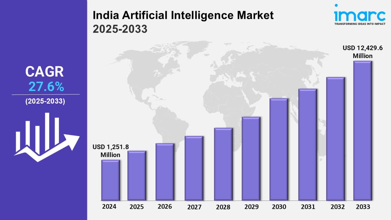 India Artificial Intelligence Market Overview Base Year: 2024 Historical Years: 2019-2024 Forecast Years: 2025-2033 Market Size in 2024: USD 1,251.8 Million Market Forecast in 2033: USD 12,429.6 Million Market Growth Rate: 27.6% (2025-2033) The India...