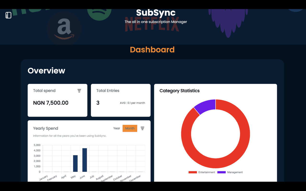 Hello, Welcome to SubSync. We are building a Subscription manager for you. It is aimed at providing you with all the tools required to take charge of your personal finance. Recurring digital costs tend to fill up the majority of your debit/credit car...
