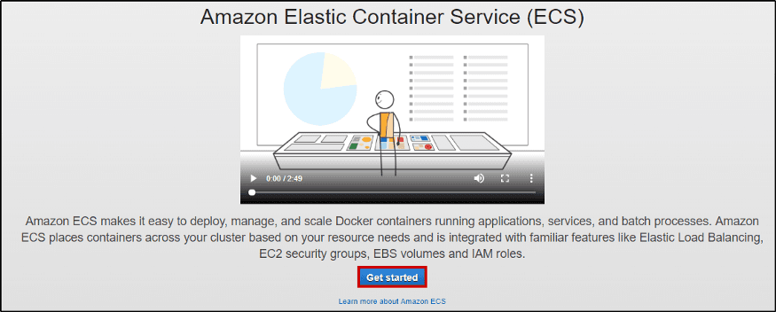 Type in “ECS” and click on that service. You’ll see a G...