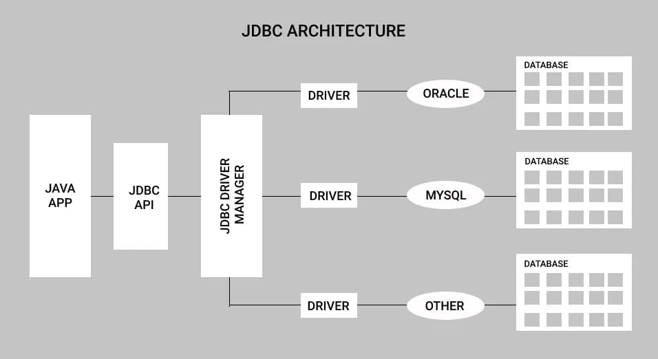 JDBC stands for Java Database Connectivity. It is a standard API provided by Oracle for Java applications to interact with different sets of database Architecture of JDBC Application: It is a Java applet or a servlet that communicates with a data so...