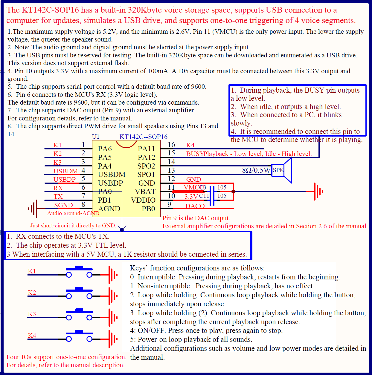 Question: Is the built-in 320KByte memory of the KT142C voice chip insufficient? Are there other solutions? The KT142C voice chip comes with 320KBytes of built-in memory. You can find detailed information about this in Section 4.3 of the chip manual,...