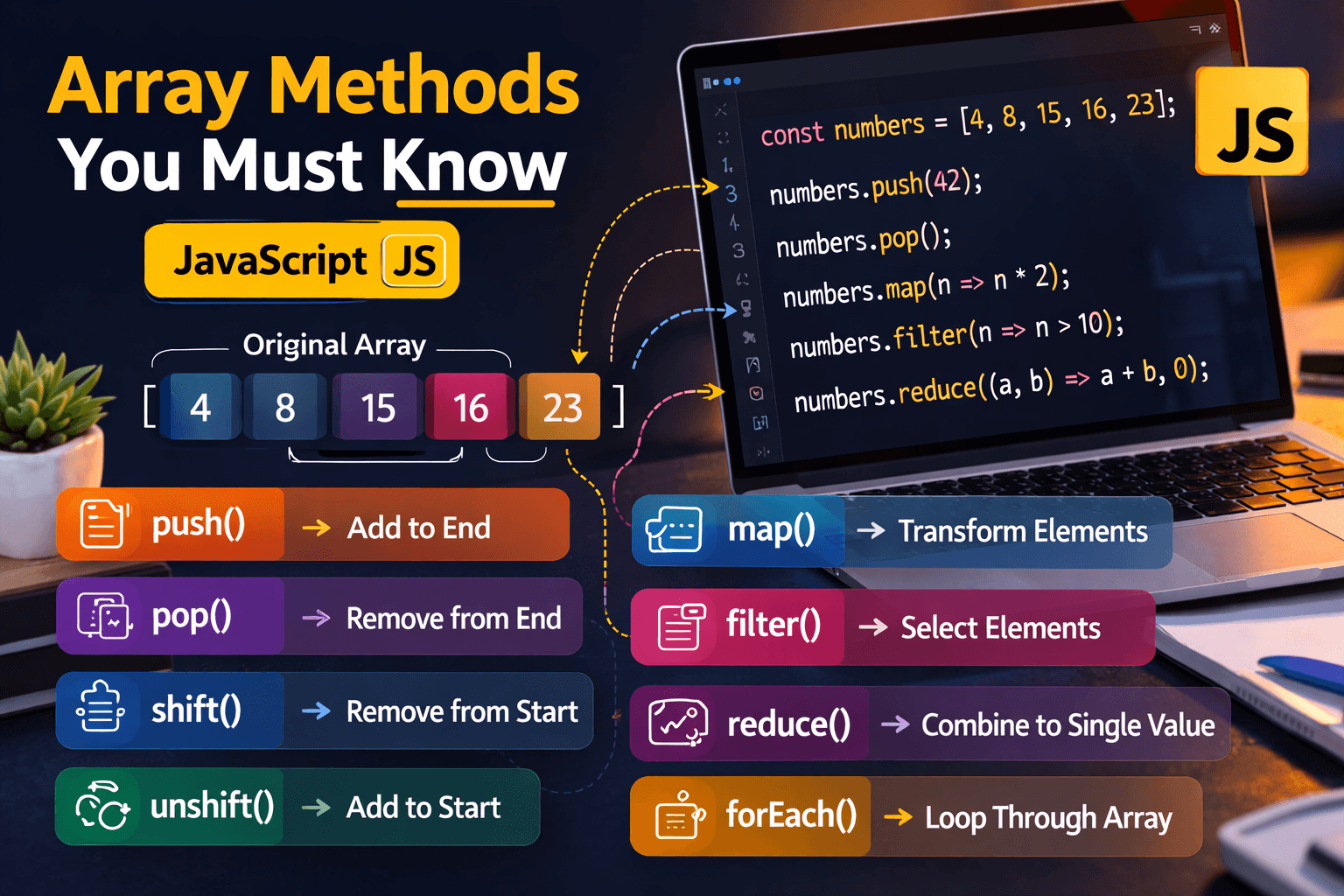 Arrays are the go-to data structure when you need to work with lists of items in JavaScript. Once you know the basic methods, manipulating arrays becomes much faster and your code becomes clearer. Thi