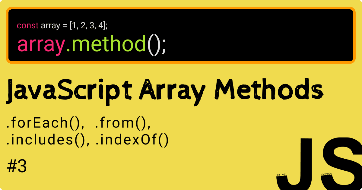 Methods in this article: .forEach(), .from(), .includes(), .indexOf() Hellooo and Welcome to article #3 in the series JavaScript Array Methods(), Another post where we're going to learn the basics of some array methods in JavaScript(syntax, purpose...