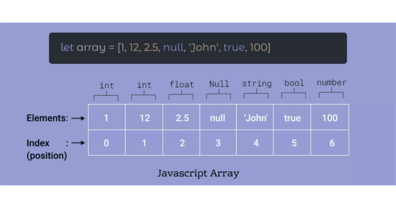 Description In JavaScript, array is a single variable that is used to store different elements. It is often used when we want to store list of elements and access them by a single variable. Unlike most languages where array is a reference to the mult...