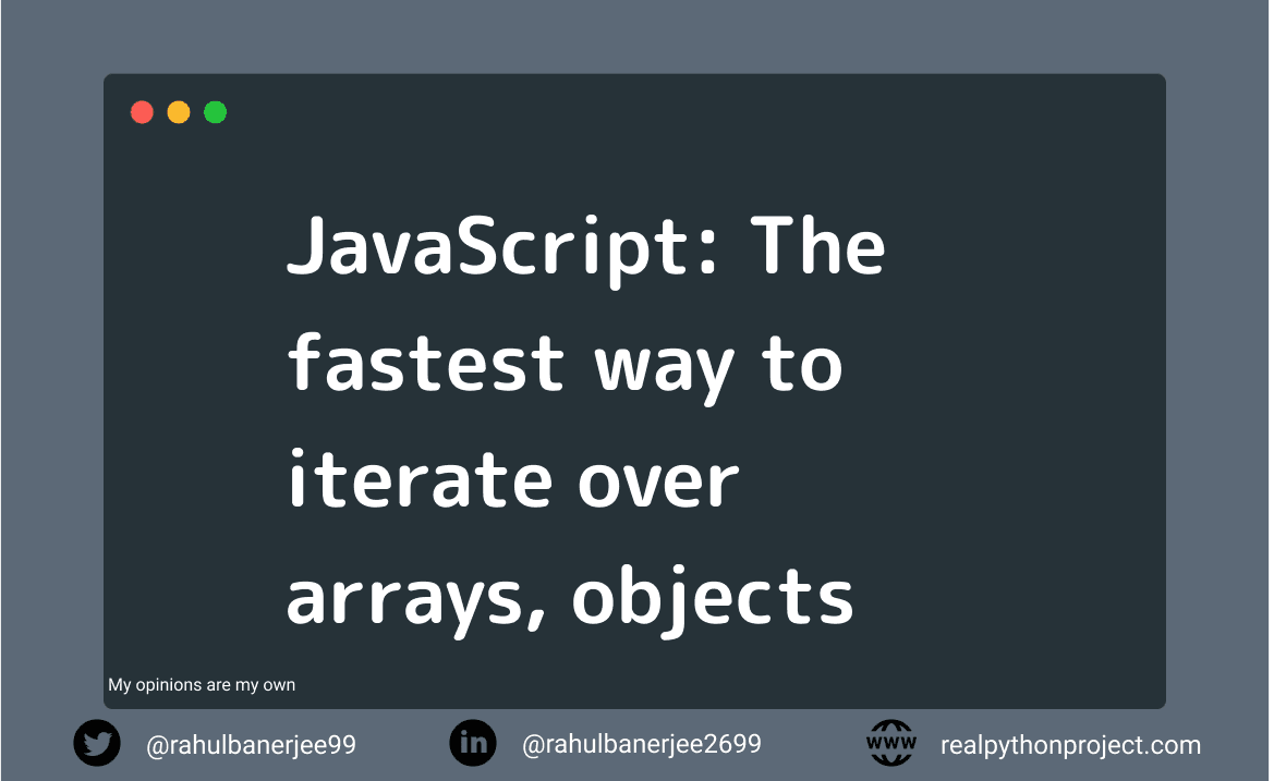 There are multiple ways to iterate over an array or objects in JavaScript but do you the fastest way? Let's find out the fastest way in this article. Arrays The different ways we will consider Map ForEach For....In For...Of For Loop (Normal / Rever...