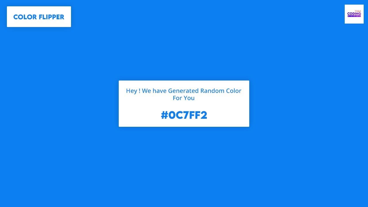 Javascript HEX Color Flipper ~ Javascript Hex Color Flipper is the best project to do using Javascript. Through this project you will learn to use Math.floor, Math.random etc. So it's Best Project for the Beginners. HTML <!DOCTYPE html> <html lan...