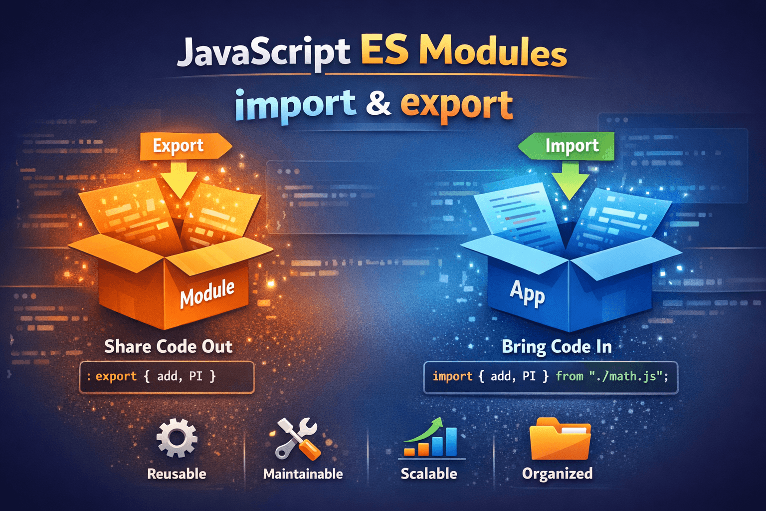 In today's article, we will discuss JavaScript's import and export modules, which are very important for making code more usable and accessible across different files. In 2015 ES6 is release, JavaScri