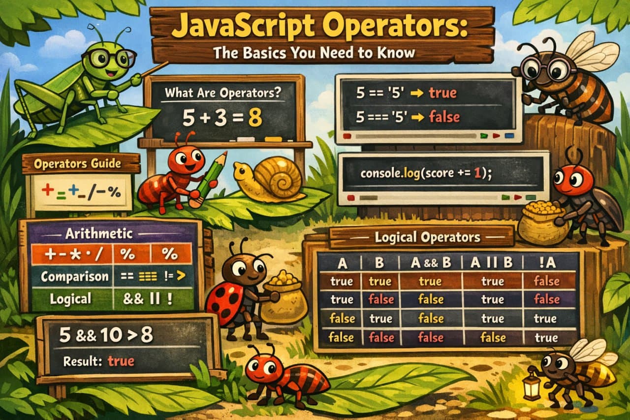 If you are just starting out with JavaScript, one of the first things you will encounter is operators. They are everywhere — in calculations, conditions, and logic. And once you understand them, a hug