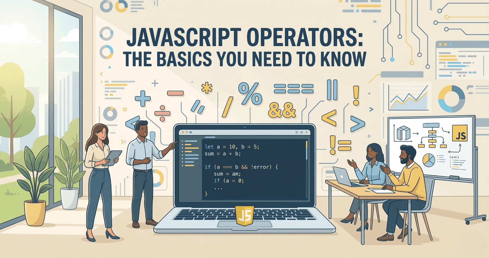 What operators are ? Operators are symbols or keywords used to perform operations on values and variables. They are the building blocks of JavaScript expressions and can manipulate data in various way