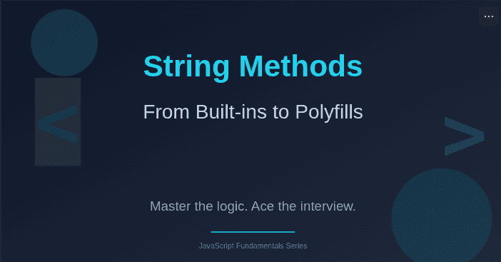Understanding String Methods Conceptually String methods are built-in functions attached to the String prototype that allow you to manipulate, analyze, and transform strings. Every string in JavaScrip