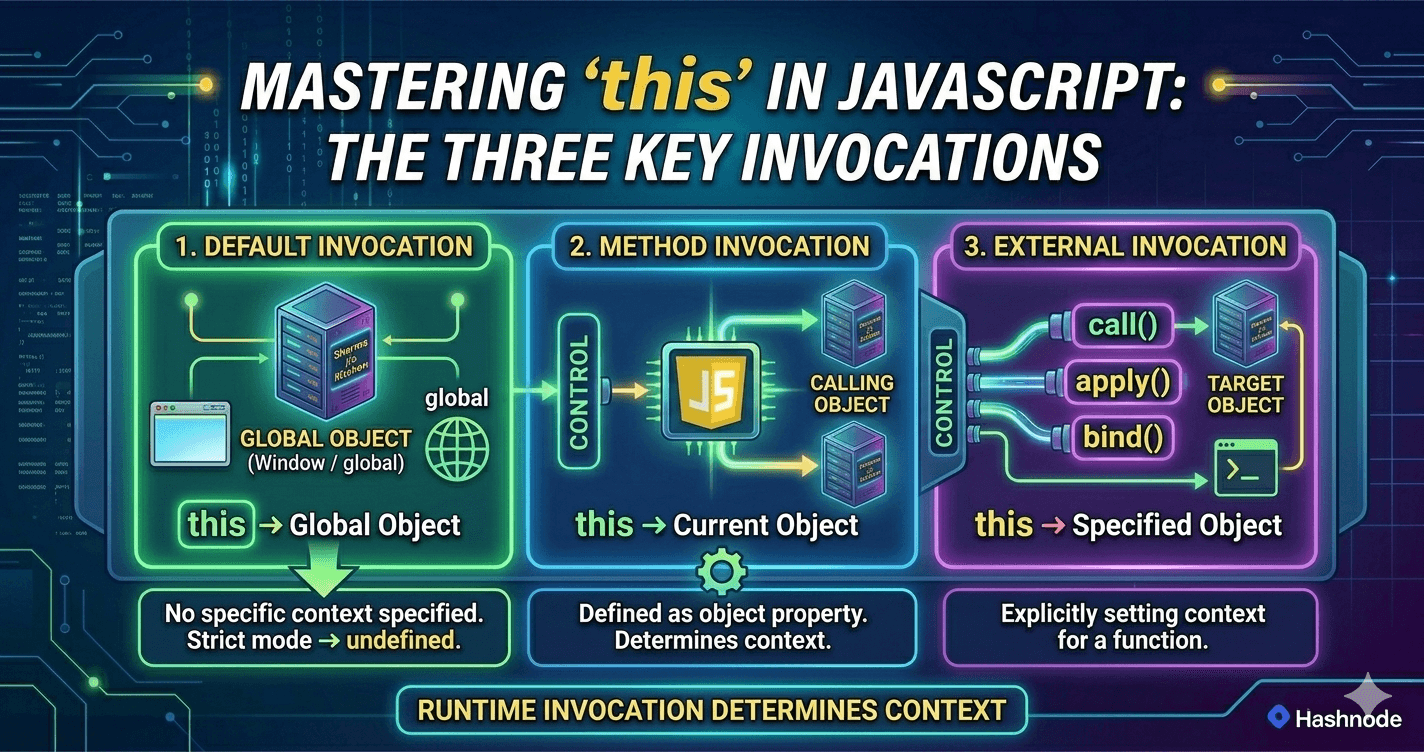 In JavaScript, the value of this depends on how a function is called, not where the function is defined. What this means in JavaScript (simple explanation) In JavaScript, this inside the Global Exec