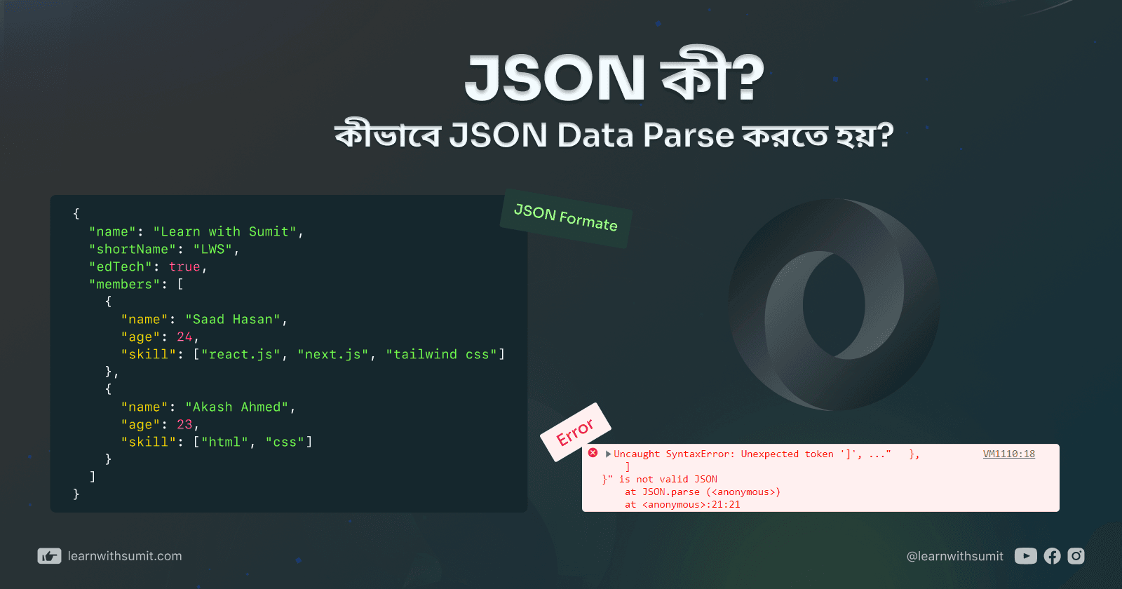 🚀 JSON সিরিজ লিঙ্ক - https://cutt.ly/65omPp7 JavaScript Object Notation (JSON) হলো একটি Data Interchange format যেটা machine এবং human উভয়ের জন্য পড়া এবং generate করা খুব সহজ। ওয়েব এপ্লিকেশনে সার্ভার এবং ক্লায়েন্টের ডাটা কমিউনিকেশনের জন্য মূলত JSON ...
