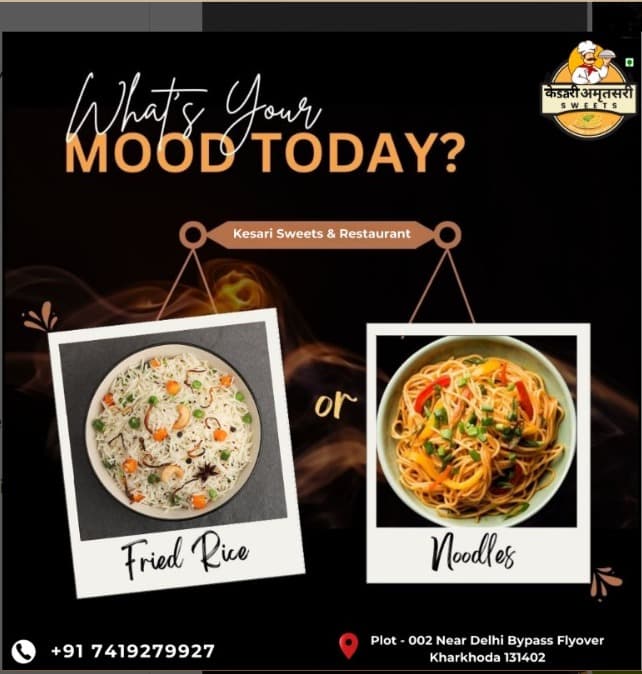 Kesari Amritsari Sweets is a vibrant Indian restaurant in Kharkhoda, known for its authentic Desi and healthy food. Step into our cozy, warmly lit space and experience the comforting flavors of Italy. Our menu features fresh, locally sourced ingredie...