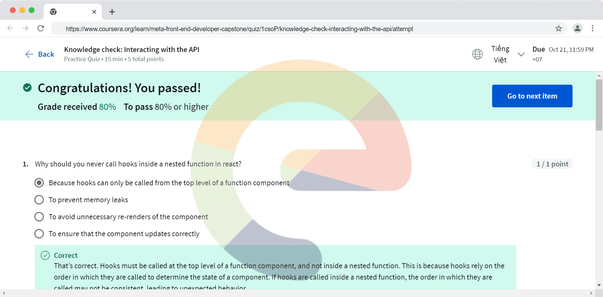 Why should you never call hooks inside a nested function in react? Because hooks can only be called from the top level of a function component To ensure that the component updates correctly To avoid unnecessary re-renders of the component To prev...