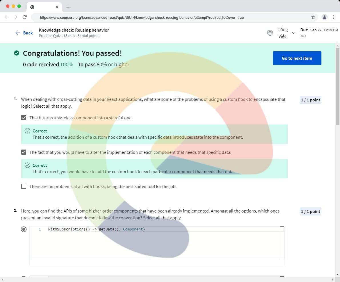 When dealing with cross-cutting data in your React applications, what are some of the problems of using a custom hook to encapsulate that logic? Select all that apply. That it turns a stateless component into a stateful one. The fact that you would...