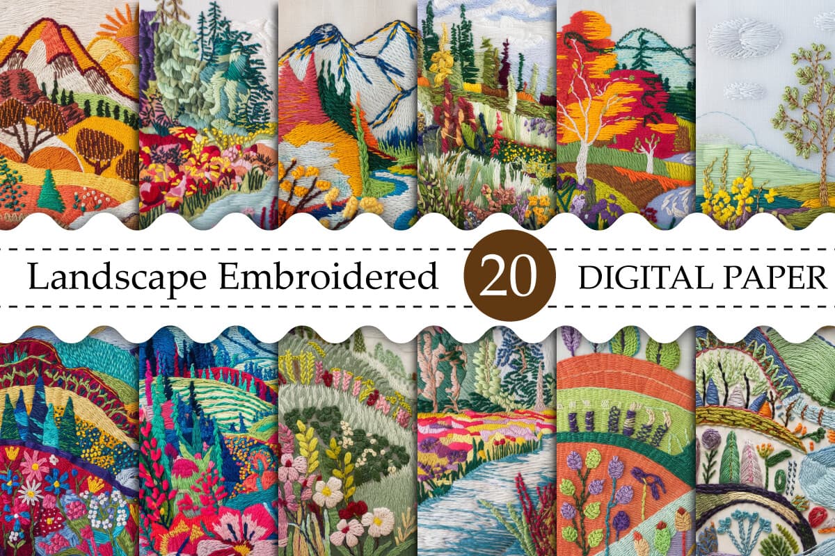 Landscape Embroidered Digital Papers: π Check out Landscape Embroidered Digital Papers now! Explore this π digital background textures & images and claim your π free download here. Let's start crafting together! π Landscape Embroidered 20 digital...