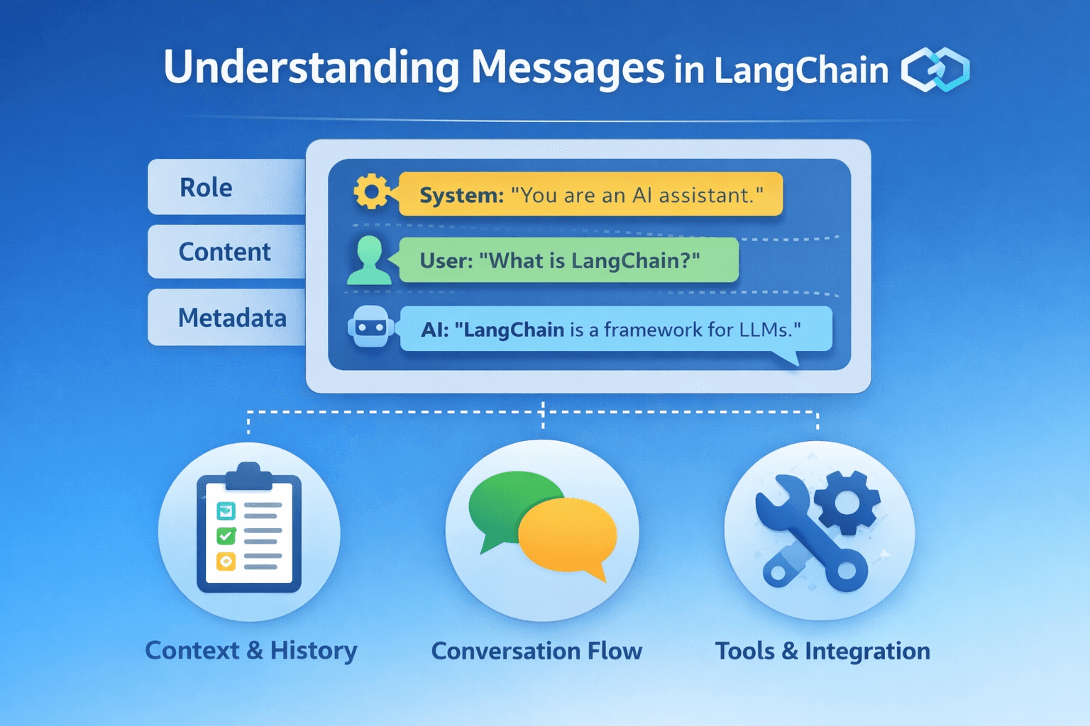 So far in this series, we have covered: LangChain Basics Agents Tools Models and Model Integration Streaming and Batch Processing Now, we move to an important concept in LangChain: Messages What are