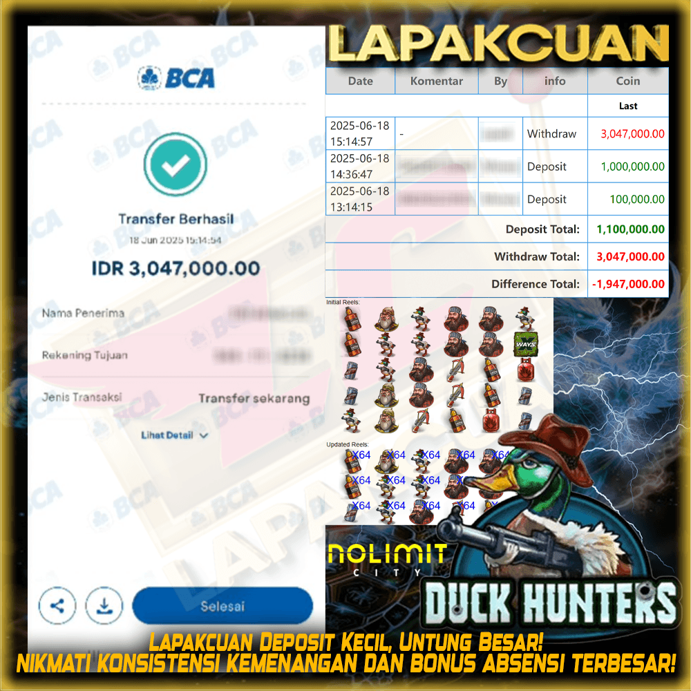 Lapakcuan - Bukti Kemenangan Member RTP Konsisten Penarikan Setiap Hari! Main slot makin seru dengan Bonus 20+20 dari Lapakcuan! Cukup deposit 20K, kamu langsung dapat tambahan 20K secara GRATIS! Lebih banyak modal, lebih banyak peluang menang! Keunt...