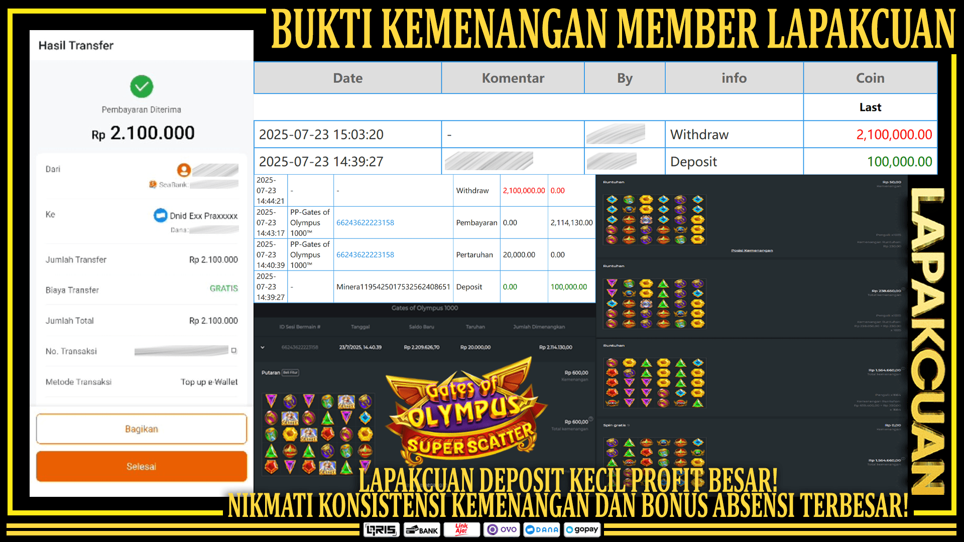 Lapakcuan - Slot modal receh? mudah menang! Main slot min deposit cukup 5rb. Bonus 100% langsung cuan! π° Provider Paling Gacor: Pragmatic Play PG Soft Habanero Spadegaming π₯ Jam Gacor: 14:00 - 16:00 WIB 19:00 - 21:00 WIB 23:00 - 00:00 WIB ...