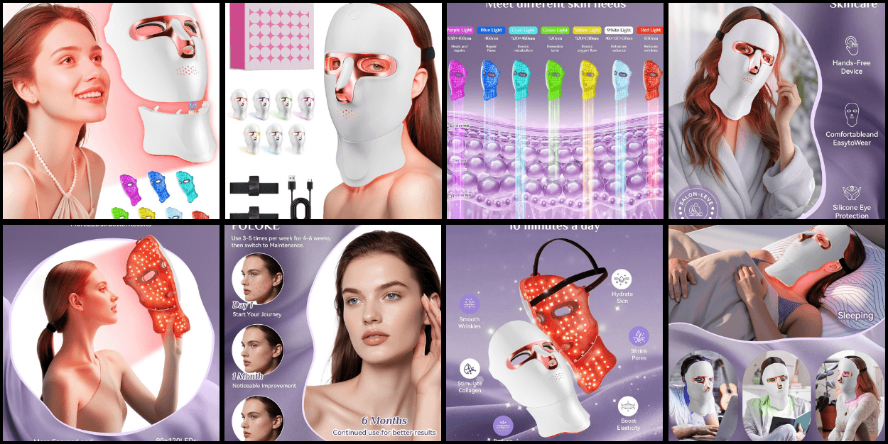 Found in: Health & Household About This Item : — — — — — — “❤️The device produces red and near infra-red (NIR) light in the visible spectrum ( Red & NIR Lights Masks) in intended to improve the appearance of wrinkles.” “❤️The system consists of a fle...