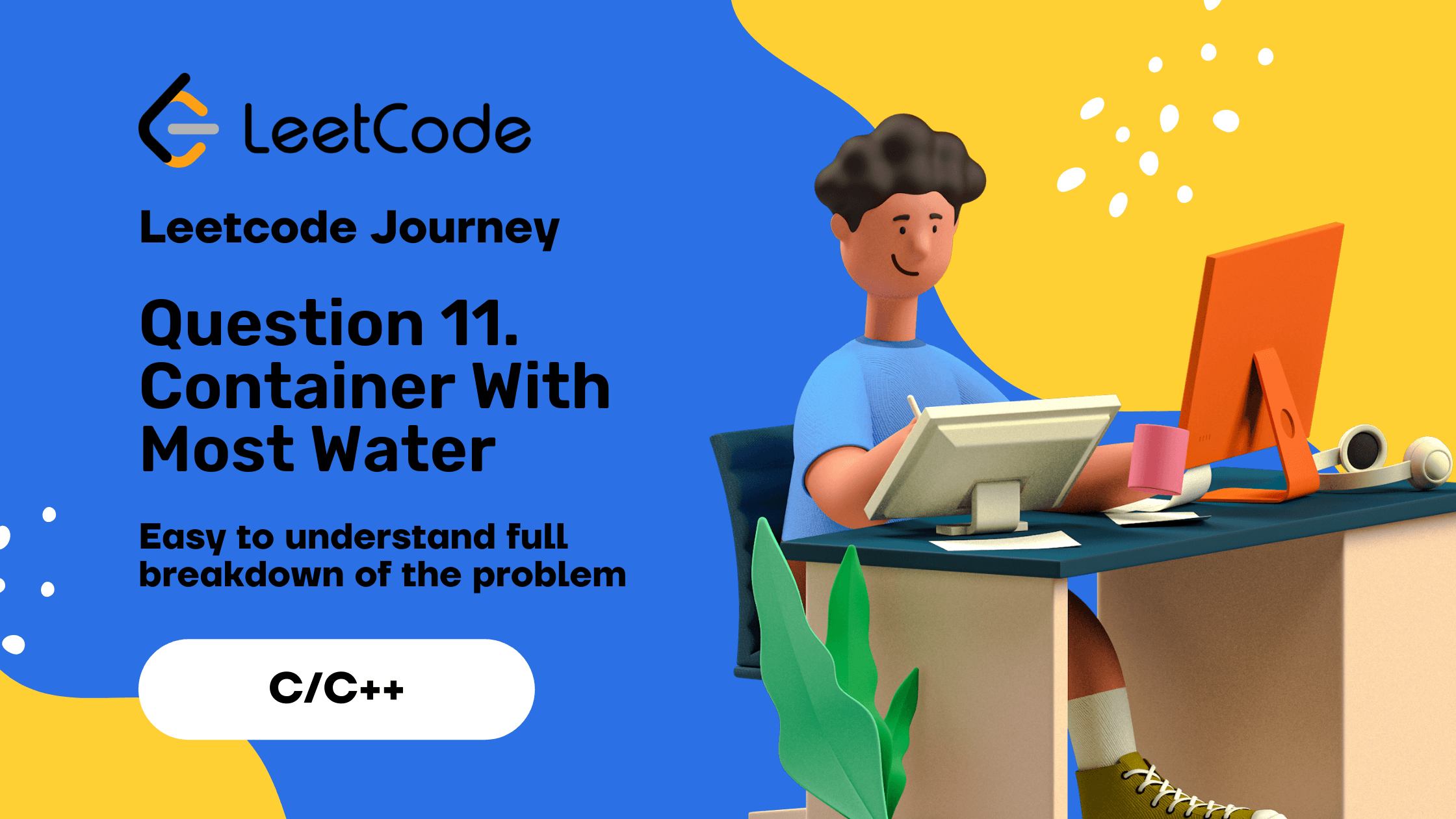 Problem: Q11. Container With Most Water You are given an integer array height of length n. There are n vertical lines are drawn such that the two endpoints of the ith line are (i, 0) and (i, height[i]). Find two lines that together with the x-axis fo...