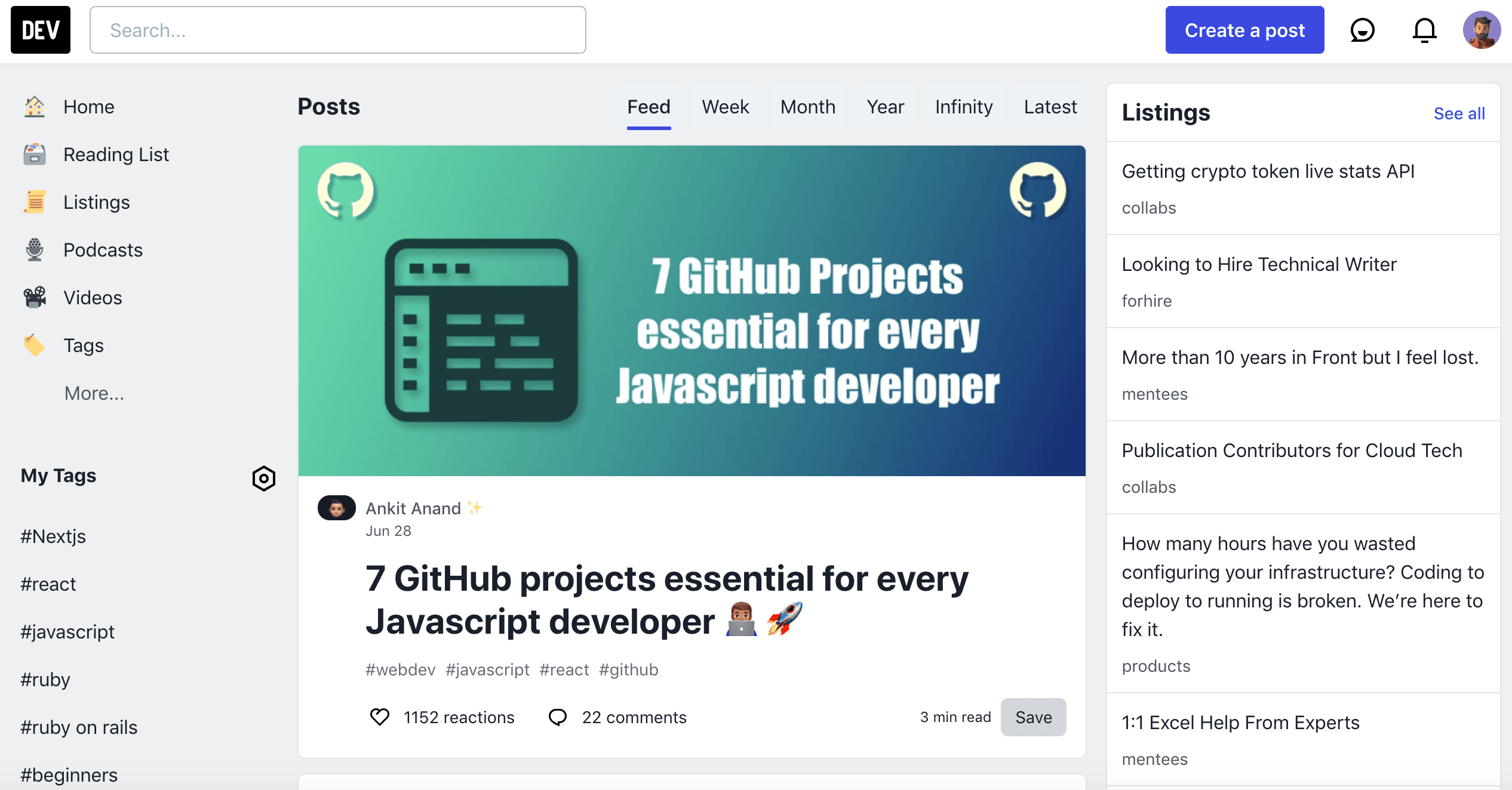 Let's clone dev.to with the actual dev.to api to get the posts and listings.