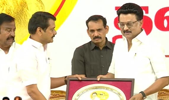 கரூரில் திமுக முப்பெரும் விழா நடந்தது. இந்த விழாவில் திமுக தலைவரும், தமிழக முதல்வருமான மு.க.ஸ்டாலின், திமுவின் அமைச்சர்கள், எம்.பி.க்கள், எம்.எல்.ஏ.க்கள், திமுகவின் நிர்வாகிகள் கலந்து கொண்டனர். இந்த விழாவில் பல ஆயிரக்கணக்கான திமுக தொண்டர்கள் கலந்து க...